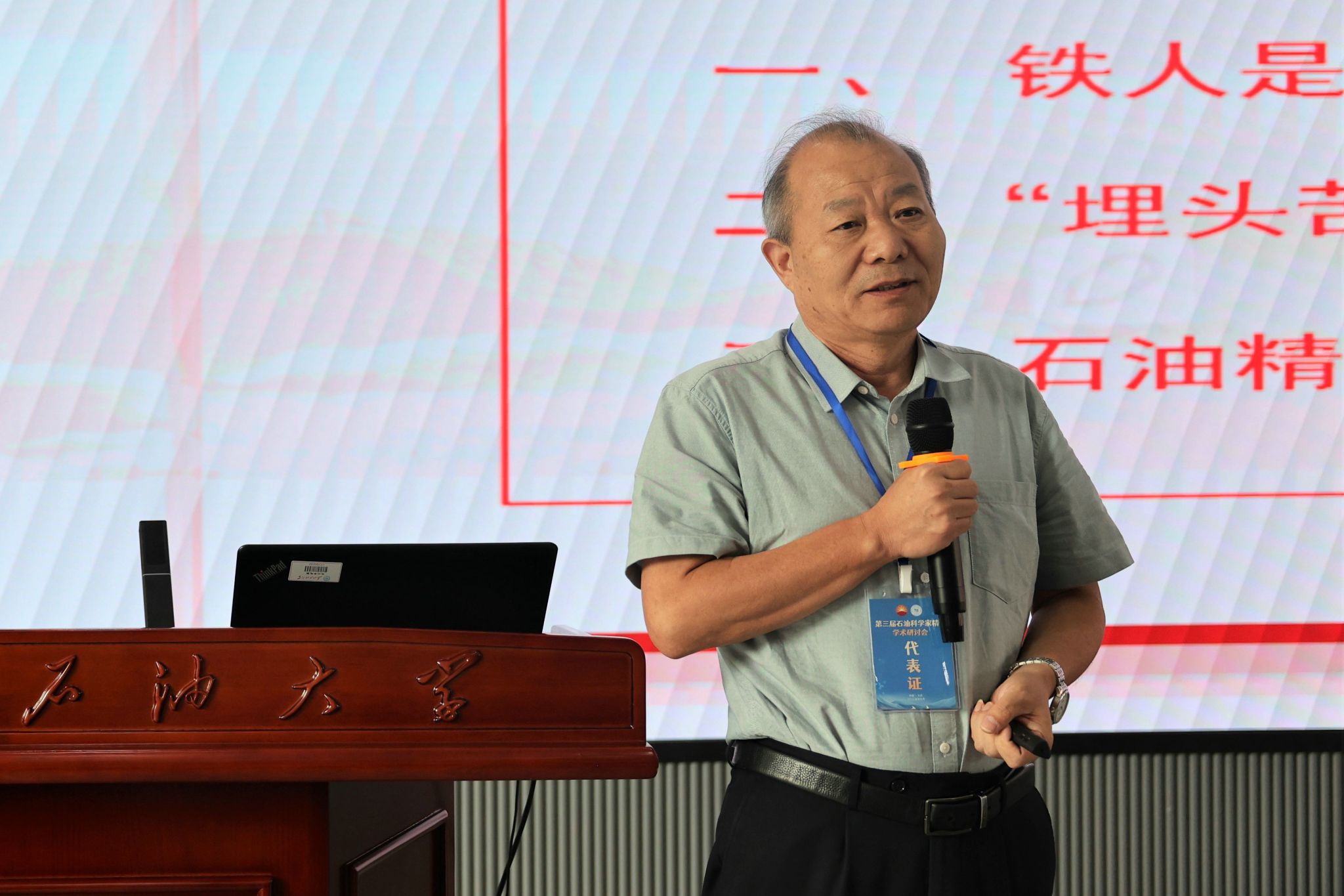 西安石油大学铁人精神研究中心首席专家、陕西省科技史学会副理事长郭岗彦以《大庆精神的成因及科学家精神的作用》为题作报告