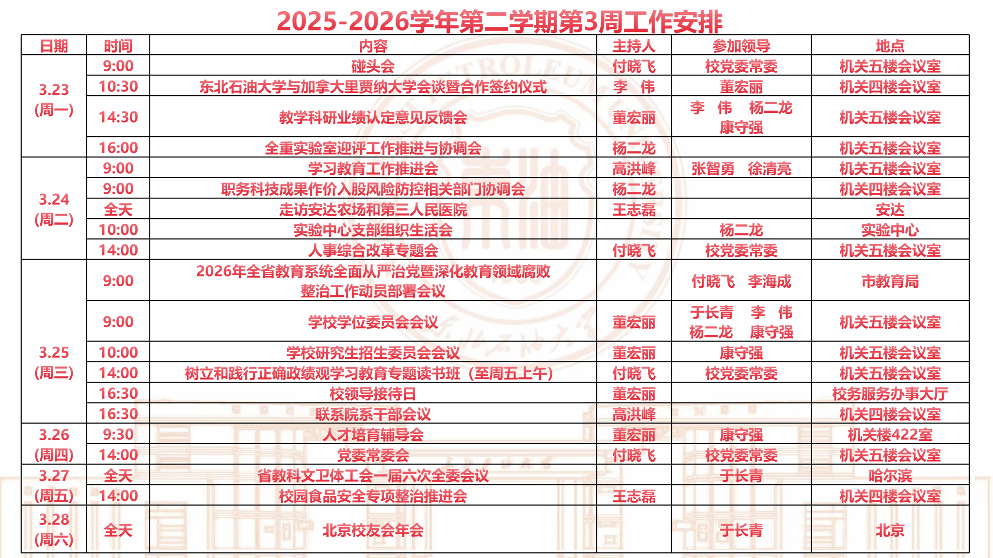 2025-2026学年第二学期第3周工作安排